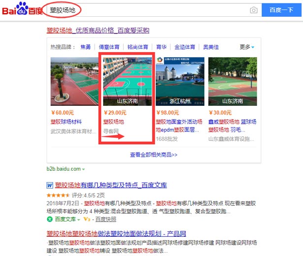 “塑膠球場”成功入駐百度愛采購