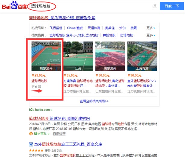 百度愛采購“籃球場地膠”入駐案例展示
