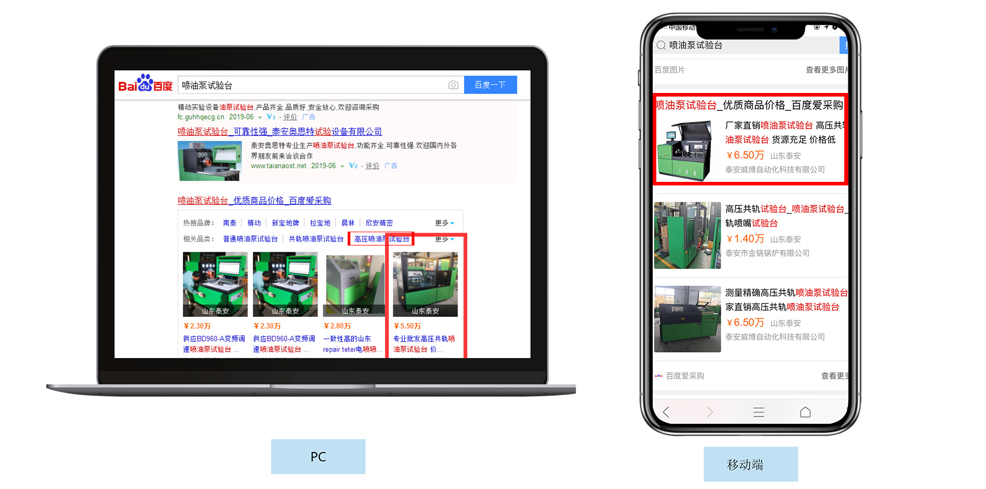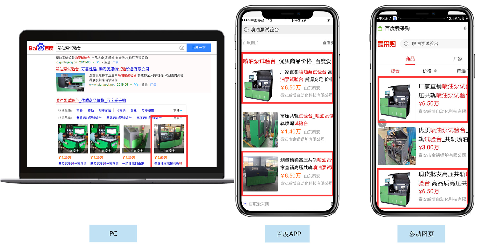 PC、移動網頁、百度APP,多端同步展現商品信息,方便買家搜索觸達。
