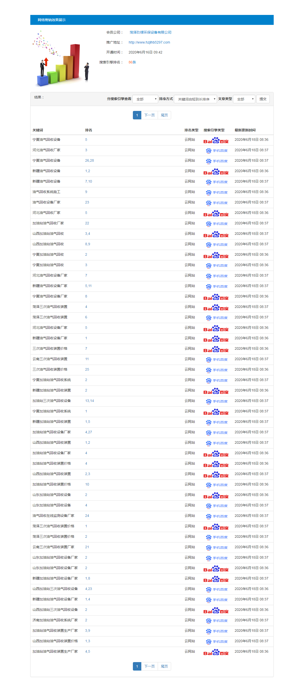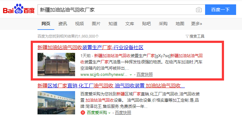 油氣回收行業(yè)全網(wǎng)推廣測試兩天上詞情況