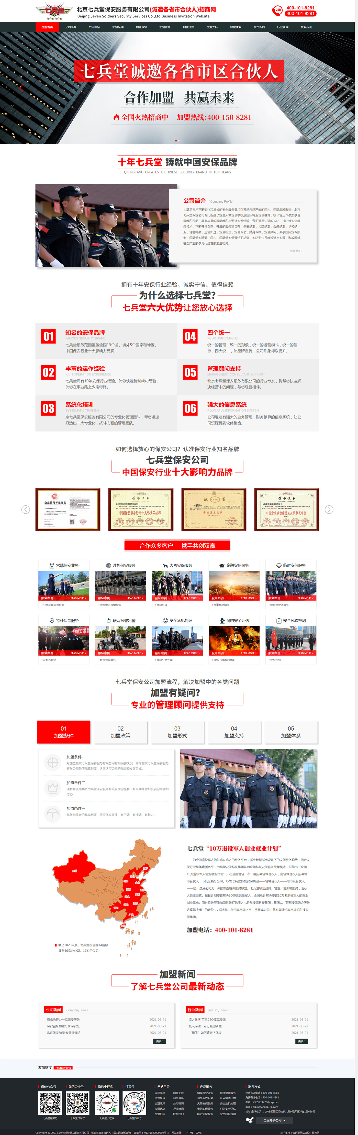 北京七兵堂保安服務(wù)有限公司是由7個退役特種兵發(fā)起的提供綜合、國際安保服務(wù)的企業(yè),從2006年開始開展保安服務(wù),2011年新的《保安服務(wù)管理?xiàng)l例》頒布實(shí)施之后,獲批《保安服務(wù)許可證》的正規(guī)合法新型民營安保服務(wù)企業(yè),是中國開展新型綜合安全服務(wù)的企業(yè),是目前集規(guī)范化、現(xiàn)代化于一體的綜合性新型安全服務(wù)企業(yè),主要為企業(yè)和個人提供:保鏢護(hù)衛(wèi)、裝備物資運(yùn)送護(hù)送、咨詢和風(fēng)險(xiǎn)管理、安全系統(tǒng)設(shè)計(jì)與安裝及培訓(xùn)服務(wù)。2013年與英國聯(lián)合安保公司在香港共同成立七兵堂國際安保集團(tuán)有限公司,開展國際安全業(yè)務(wù)。